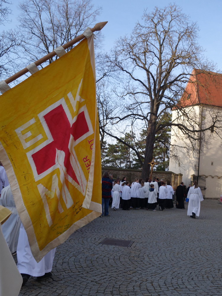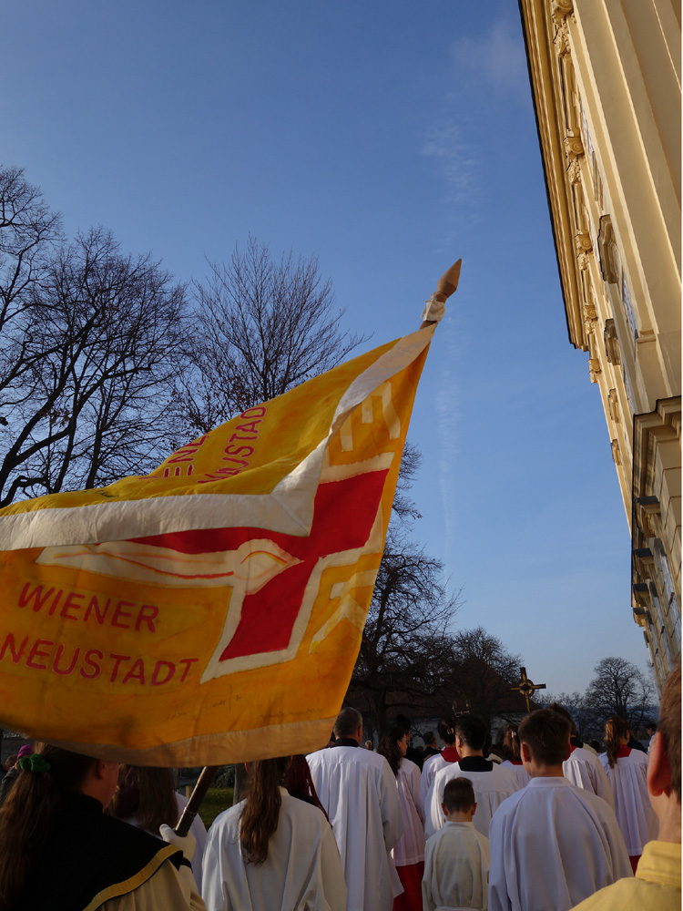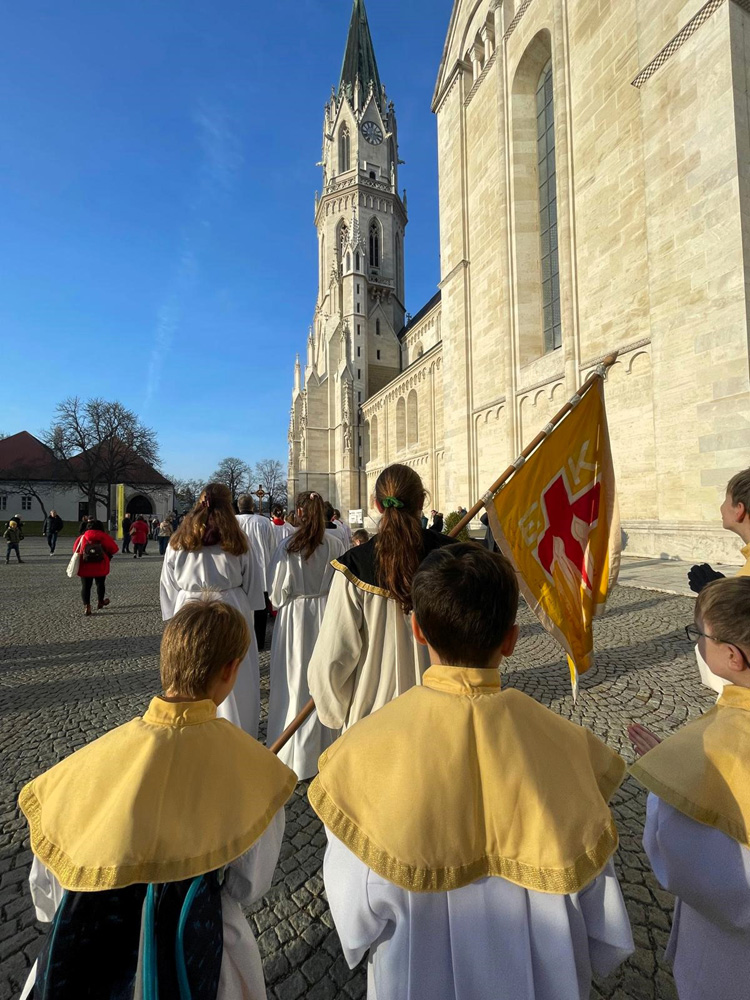 Nach dem Besuch der Sonntagsmesse brachen die Ministranten der Erlöserkirche („EK-MINIS“) zur jährlichen Ministrantenwallfahrt nach Klosterneuburg auf.
